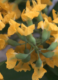 เป็นระเบียบ ขอบใบเรียบ ดอก เป็นดอกสมบูรณ์เพศ รูปดอกถั่วสีเหลือง กลิ่นหอมอ่อน